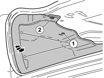 - Unhook the side panel from the mounting (2) on the underneath of the parcel shelf