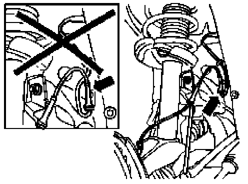 Thoroughly check that the wheel sensor cable is routed as illustrated.
