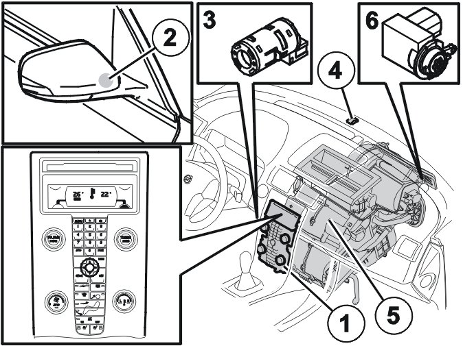 Locating The Climate Control System Components In The Passenger Compartment / Door Mirror: