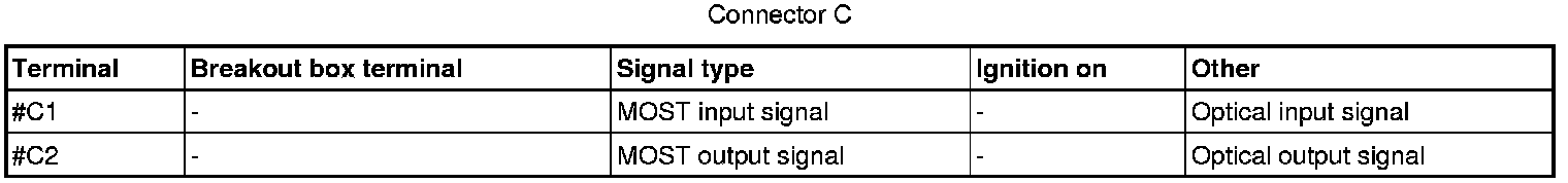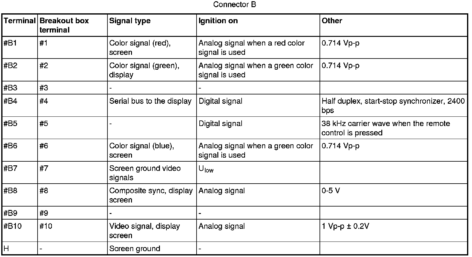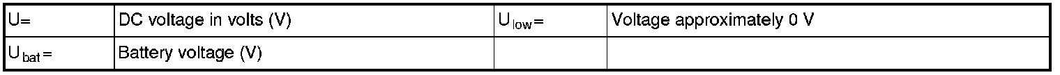 All the values given below are between the respective terminal in column 1 and terminal #A5 in column 2 (power ground) unless otherwise stated in brackets after the table entry.