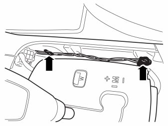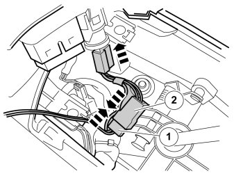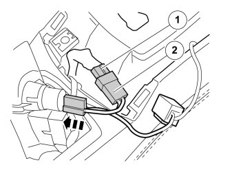 - Connect the connector (1) that was removed from the 12V outlet to the female connector (2) on the routed cable.
