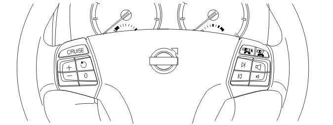 The steering wheel buttons control functions and menu selection for: