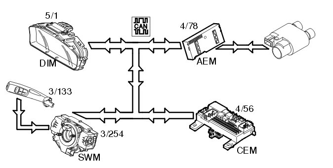 In this case the accessory electronic module (AEM) functions as a port between the Controller area network (CAN) of the vehicle and the after market alarm unit.