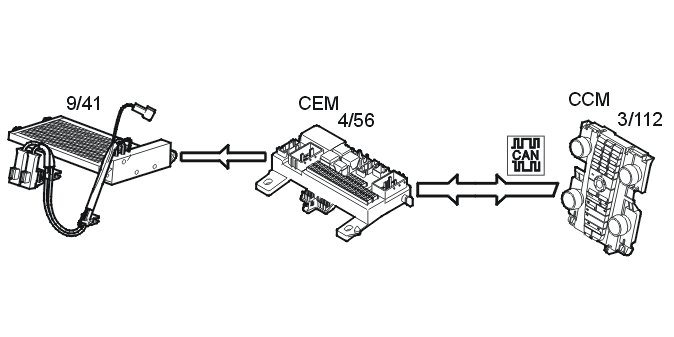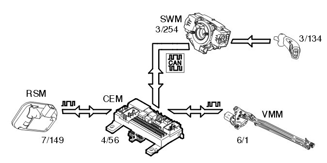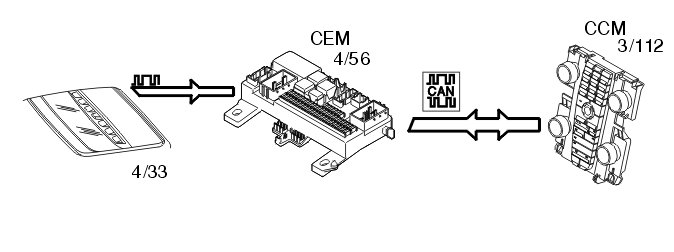 The central electronic module (CEM) (4/56) receives information via the CAN network from the climate control module (CCM).