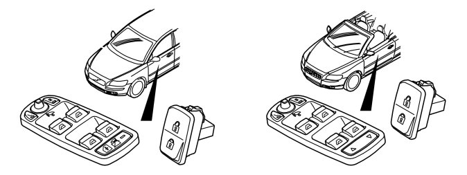 The rear power windows can be operated via the control panel in the driver's door or via the Left rear door module (LDM) or Right rear door module (RDM) (only the driver's door for the C70). The power windows can be operated when the ignition key is in position I or II. The power windows can also be operated from when the ignition is switched off until one of the front doors is opened.