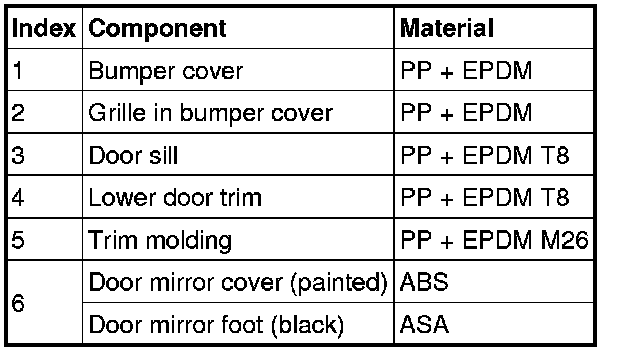 The bodywork is made up of a number of different steel materials. This is to optimize collision safety, stiffness, fuel economy, etc.
