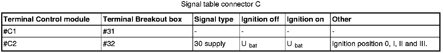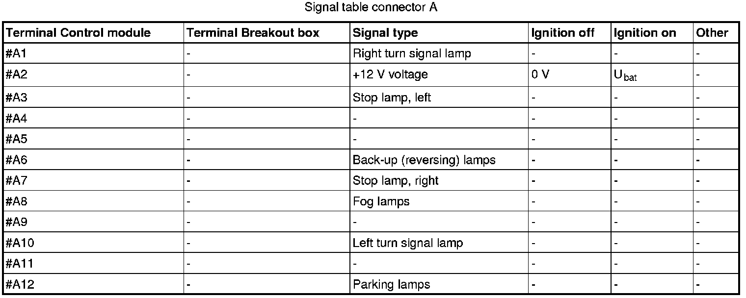 All the values given below are between the terminals stated in column 2 and terminal #B4 column 1 (power ground).