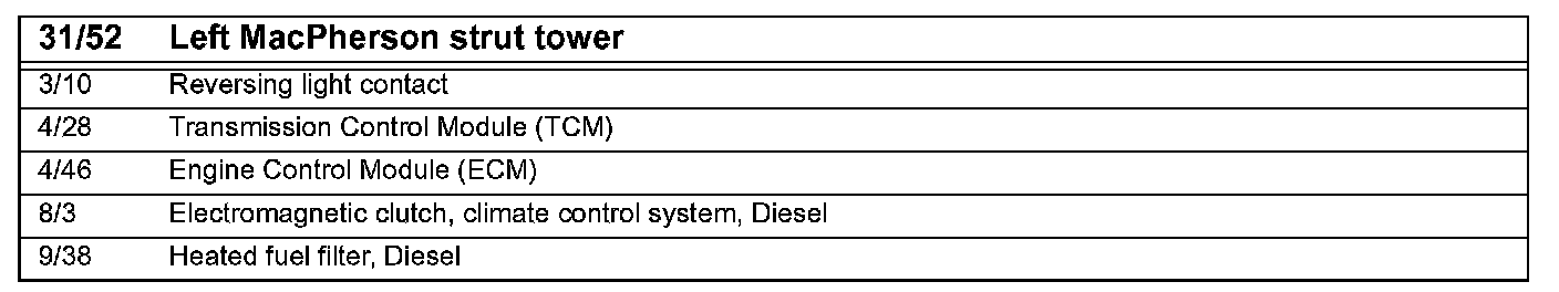 31/52 Ground Connection, Left MacPherson Strut Tower: