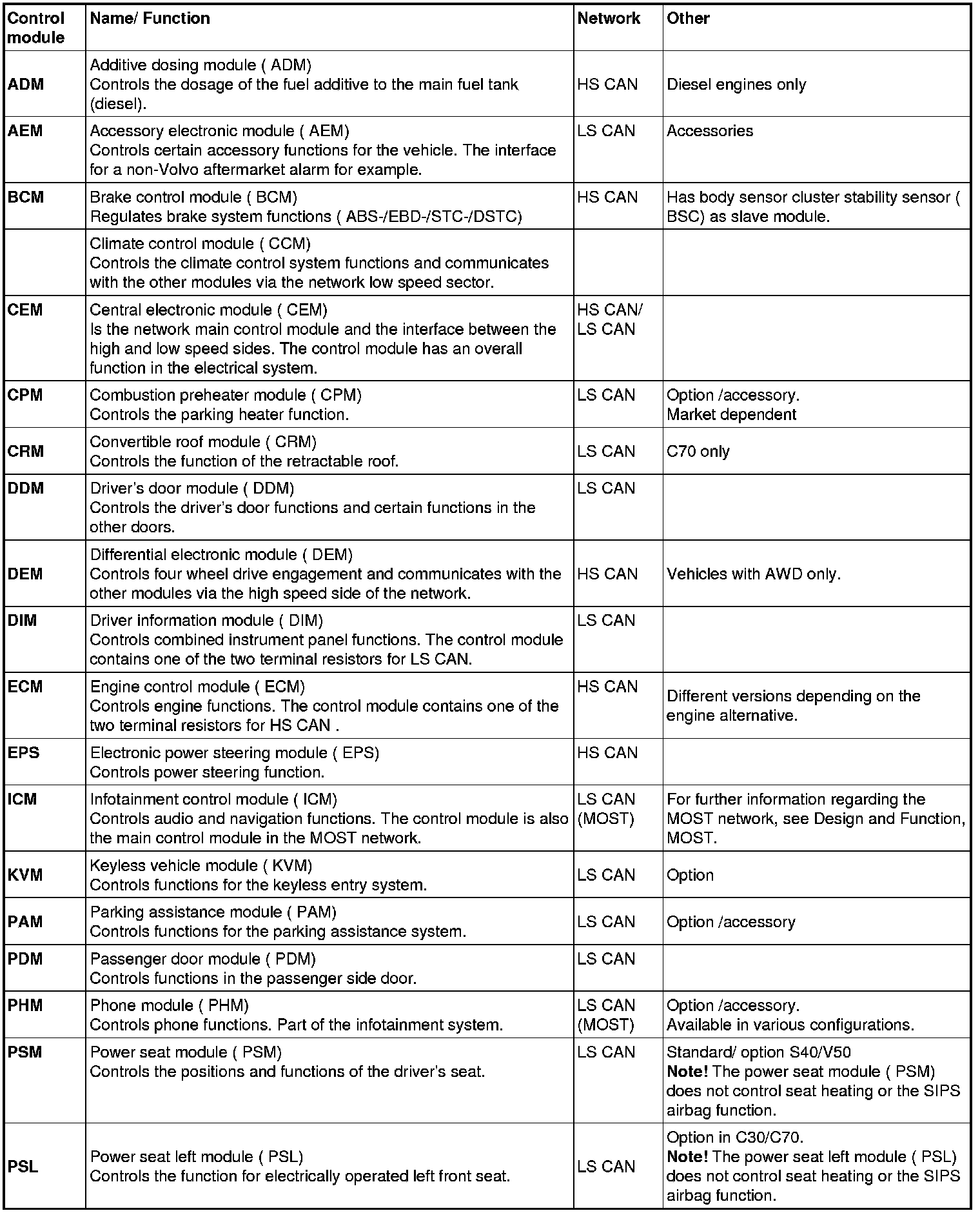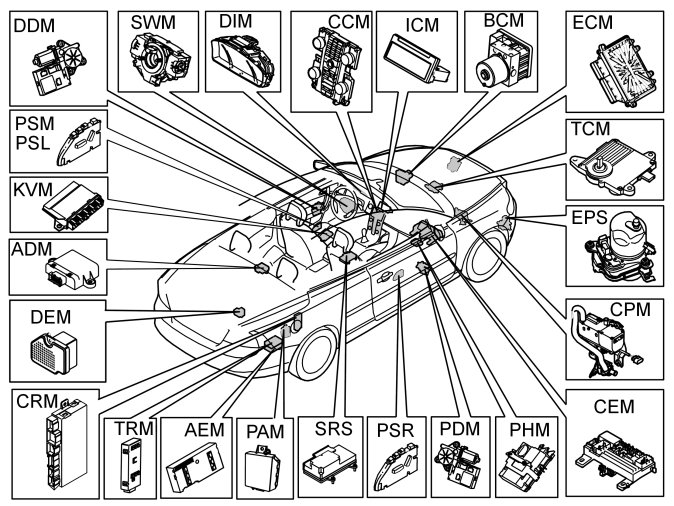 The number of control modules in the CAN varies depending on the level of equipment, the vehicle model and the structure week.