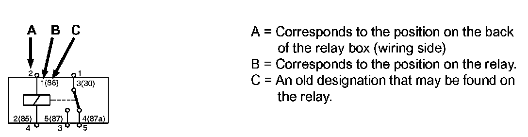 The diagram indicates two or three different designations for the relay's position. This is described in the above figure.