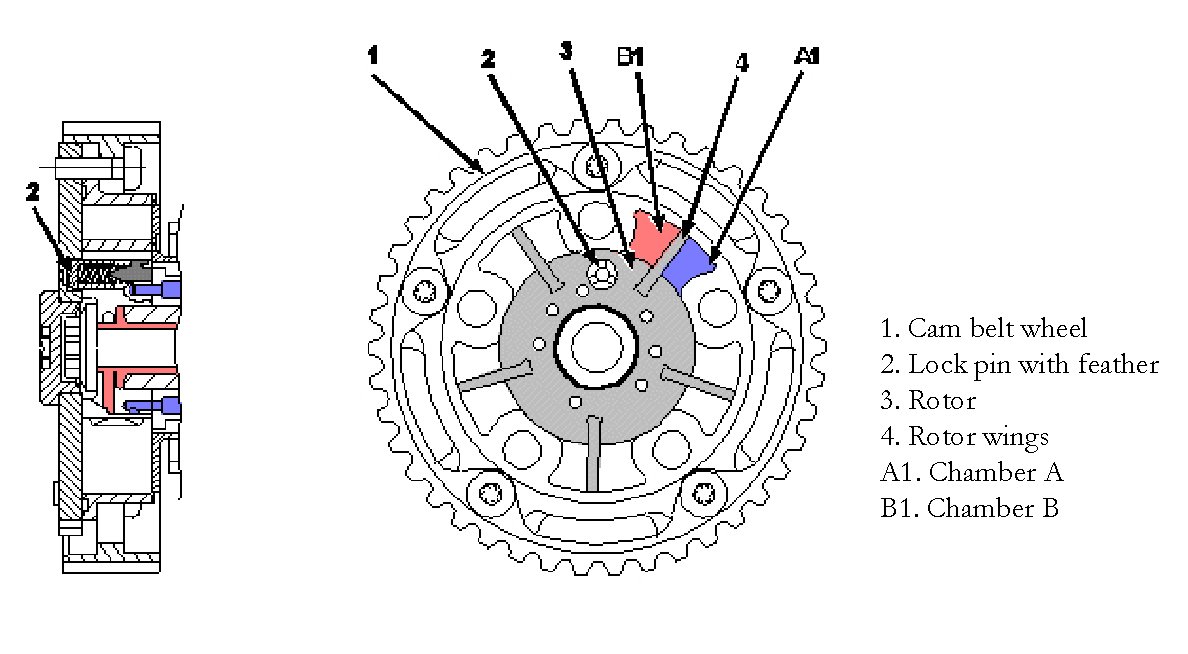 The variable camshaft main task is to minimize exhaust emissions, mainly at cold start, but also gives an improved idling quality.