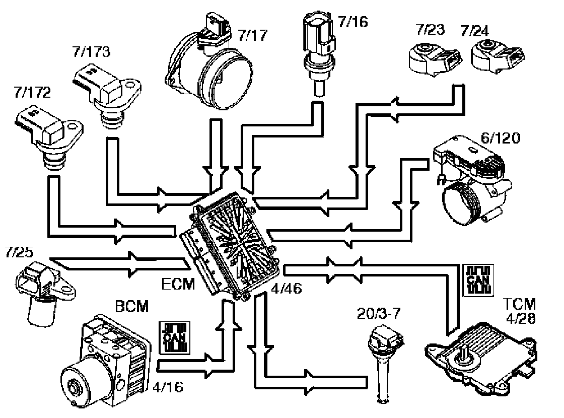 - mass air flow (MAF) sensor (7/17) engine coolant temperature (ECT) sensor (7/16)