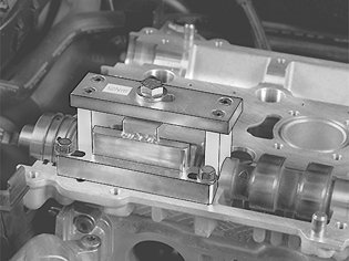 Install the lower section of camshaft press 999 5765 Holder camshaft 999 5765 Holder Camshaft by the inlet valves for cylinder 1.