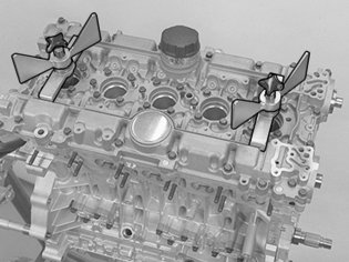Caution! Take great care around the oil ducts for the variable valve timing solenoid. This applies to both the camshaft cover and the cylinder head. The solenoid is extremely sensitive to contaminants.
