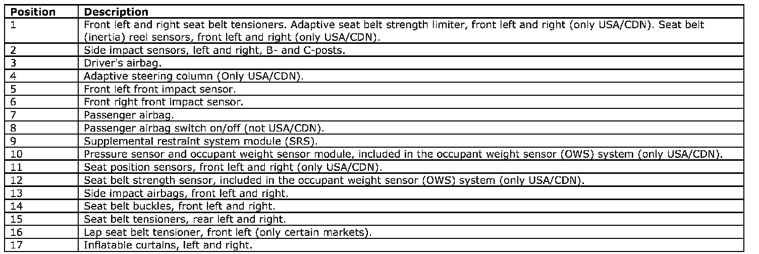 Restraints and Safety Systems: Locations