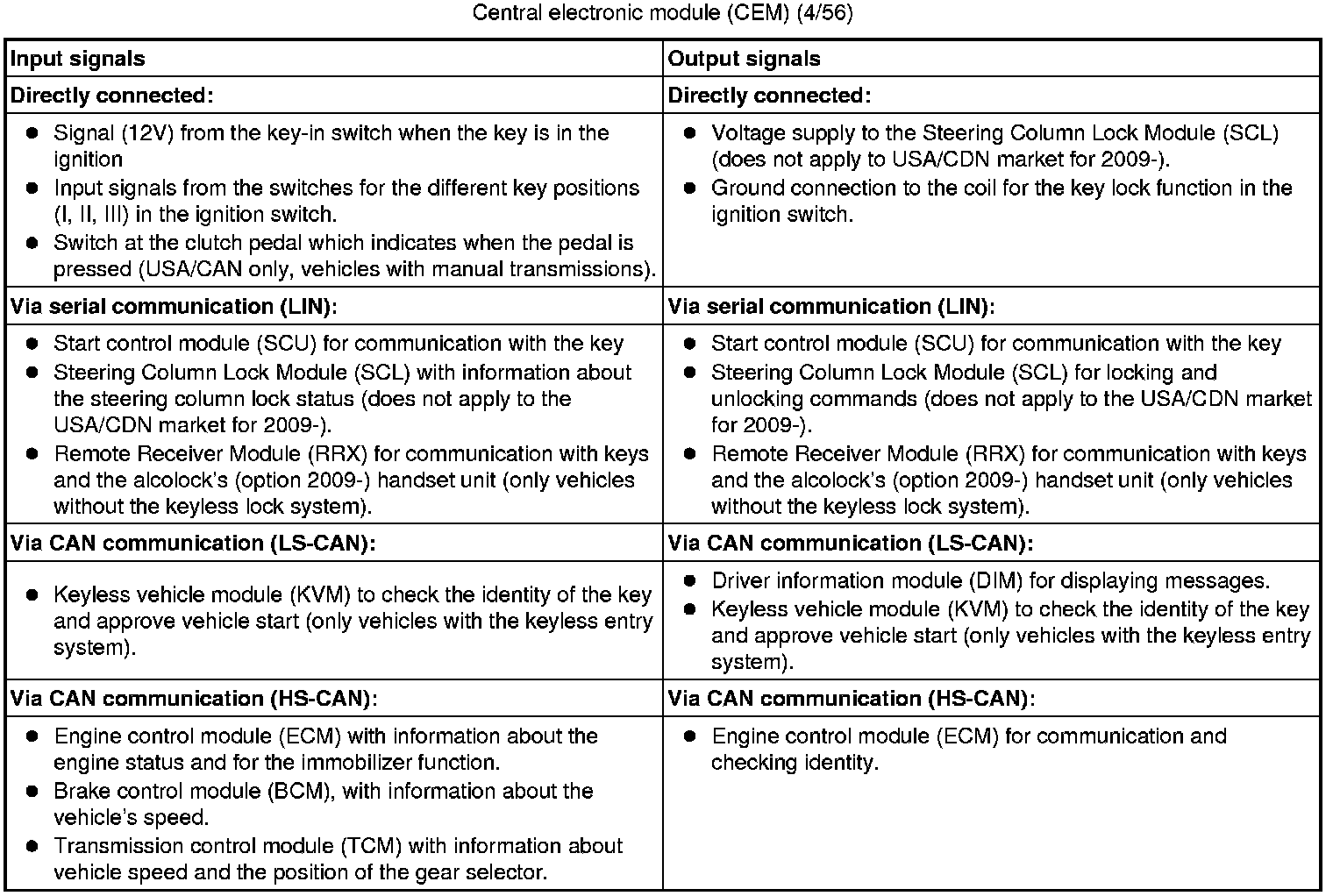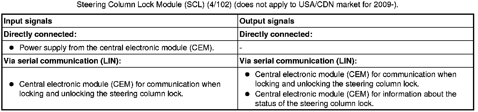 - Steering Column Lock Module (SCL) (does not apply to USA/CDN market for 2009-).