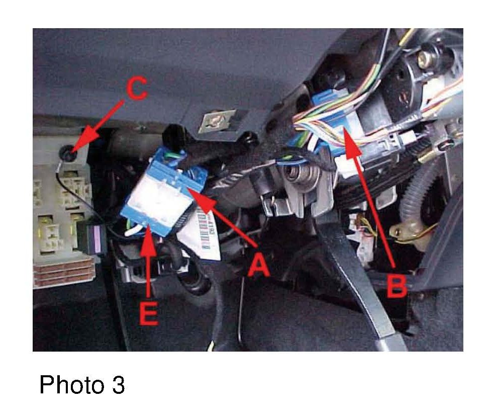 ^ Install connector A from the service harness to connector E (that was removed from the starter switch).