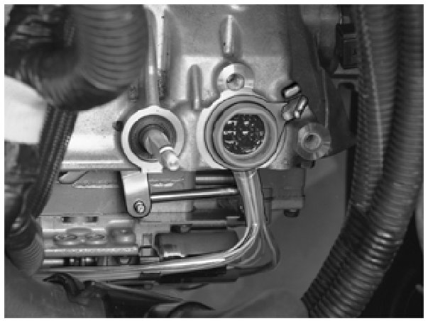 Install the cable harness for the transmission. Ensure that the guide for the connector comes between the lugs on the transmission. Ensure that the cable harness is secured to the holders on the control system.