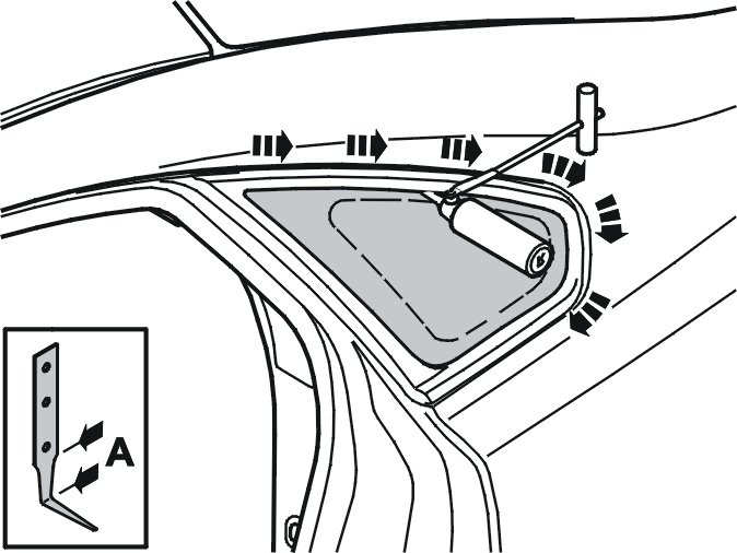 Lubricate the surfaces and inner edges of the side window using soap solution.