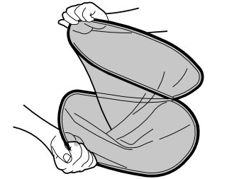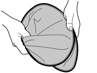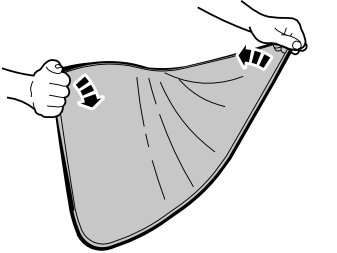 - Grip two diagonal corners and twist the sun blind as illustrated. Turn the sun blind on itself. Minimal force is required to fold the sun blind.