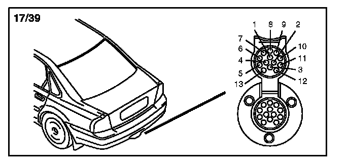 17/39 Socket, 13-pin, Towing Bracket Wiring: