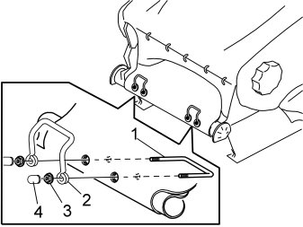 - Install and tighten the nuts (3). When tightening the nuts, ensure that they are tightened alternately to prevent the mountings from twisting. Also ensure that any foam and upholstery is pushed out of the way to prevent it from coming between the anchor mounting and SIPS tube. The anchor mounting and SIPS tube must be against each other after tightening. Tighten to 7 Nm (5.3 lbf.ft.)
