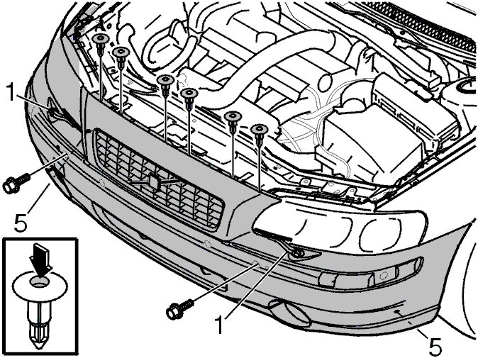 - the 2 clips on the underneath of the bumper (5).