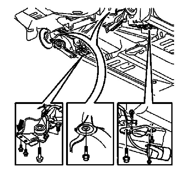 - Remove the screw for the rear mountings on the sub-frame. Remove the centering sleeves