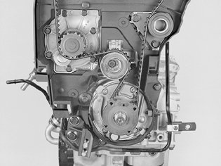 Press the toothed belt to check that the indicator on the tensioner moves easily.