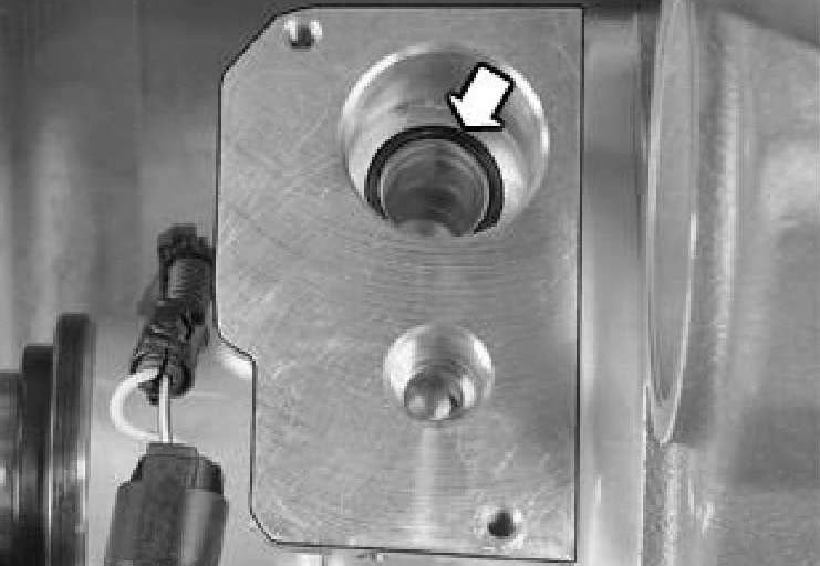 Lubricate the new O-ring with oil, P/N 116 16414 (0.3 liters). Press the O-ring into place in its seat.