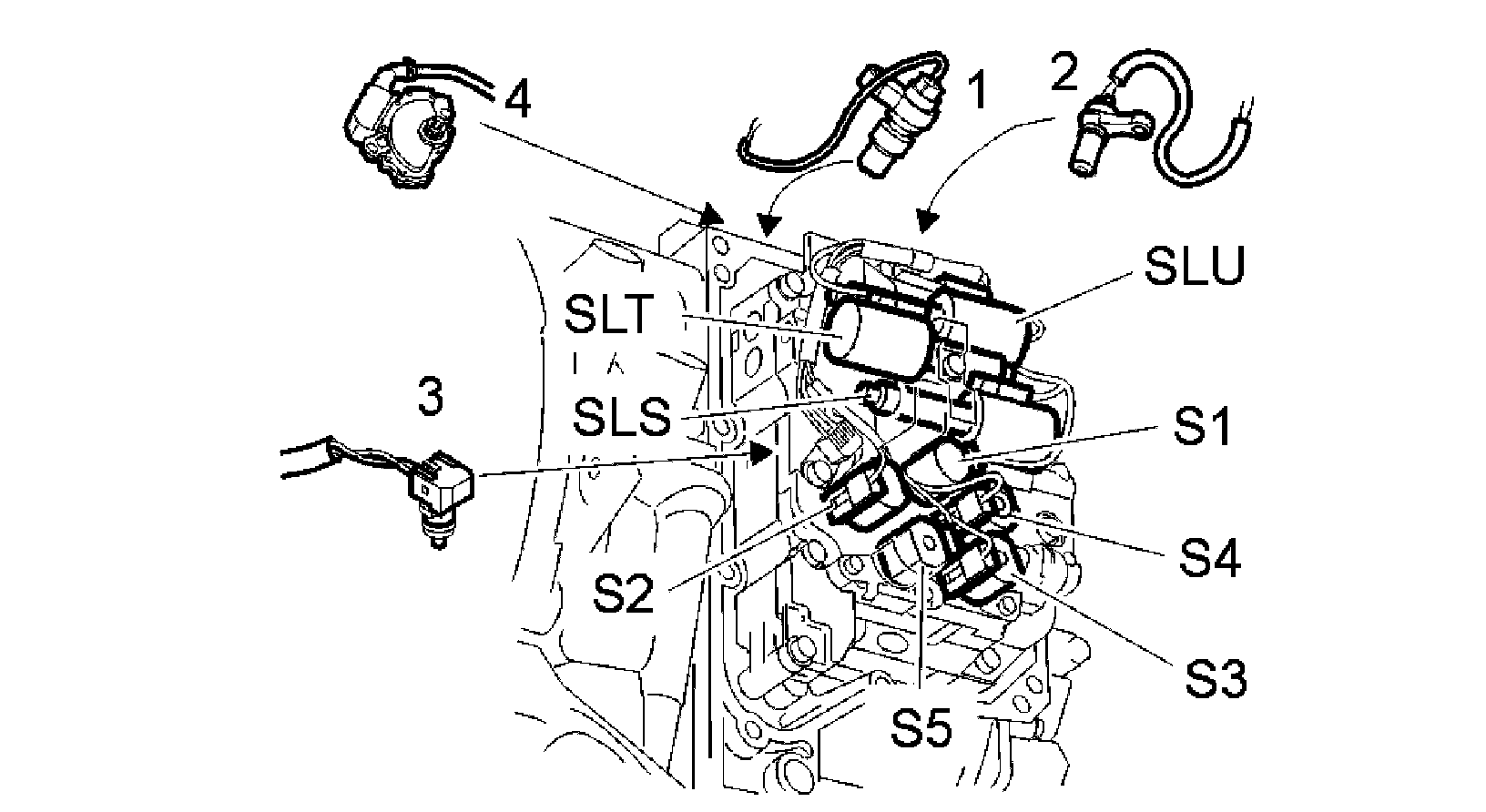 - Shift solenoid, S1 - Controls shifting in the transmission
