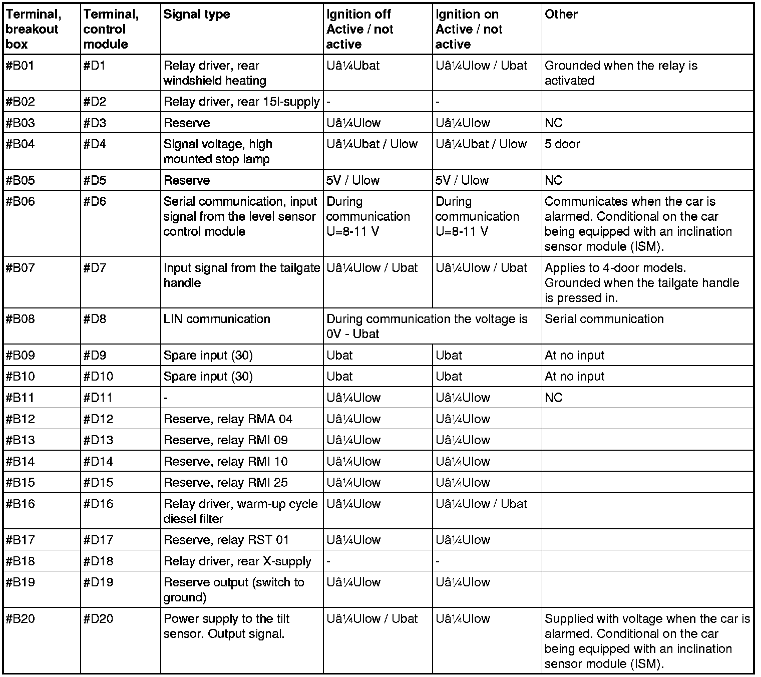 The values are measured with the control module in "Active mode".
