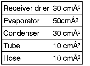 When replacing components, the following oil volumes shall be found in the new components or shall be filled in the system through the service valve, except for the compressor (see "Compressor" below):
