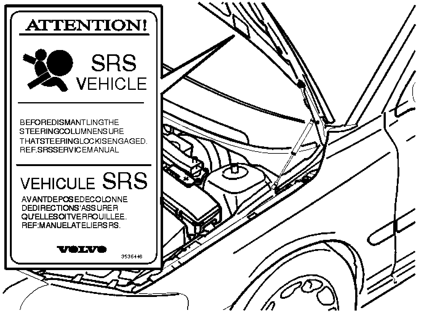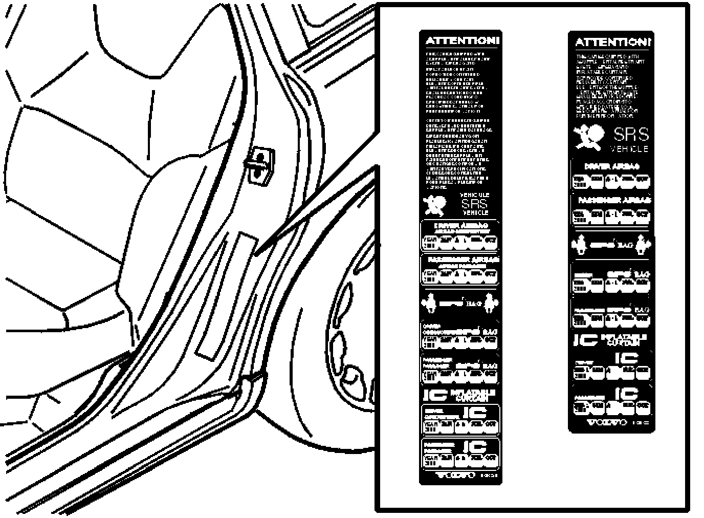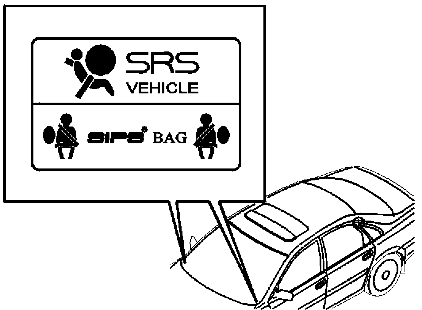 This decal indicates that the car is equipped with SRS. The SRS decal is combined with a decal for the SIPS module.