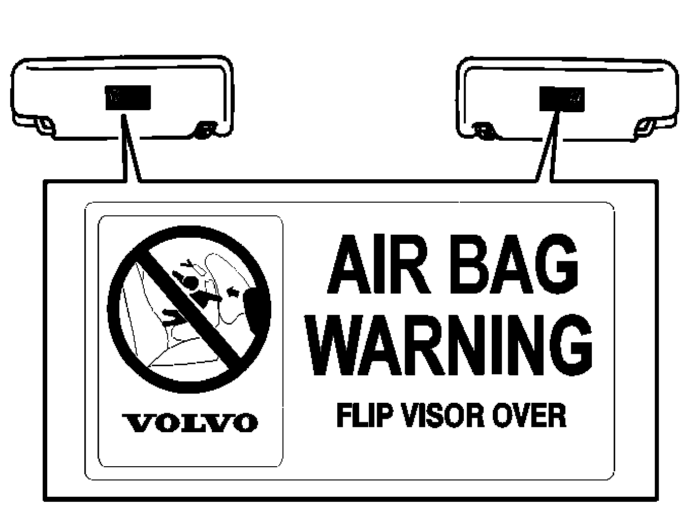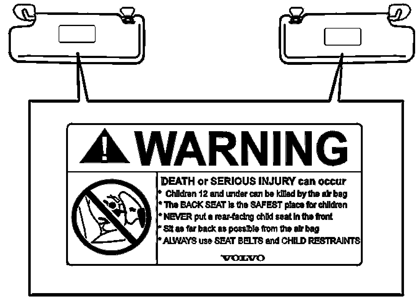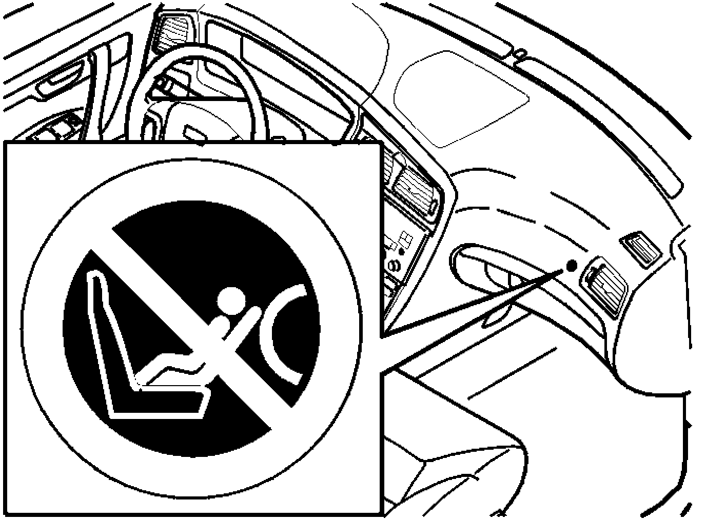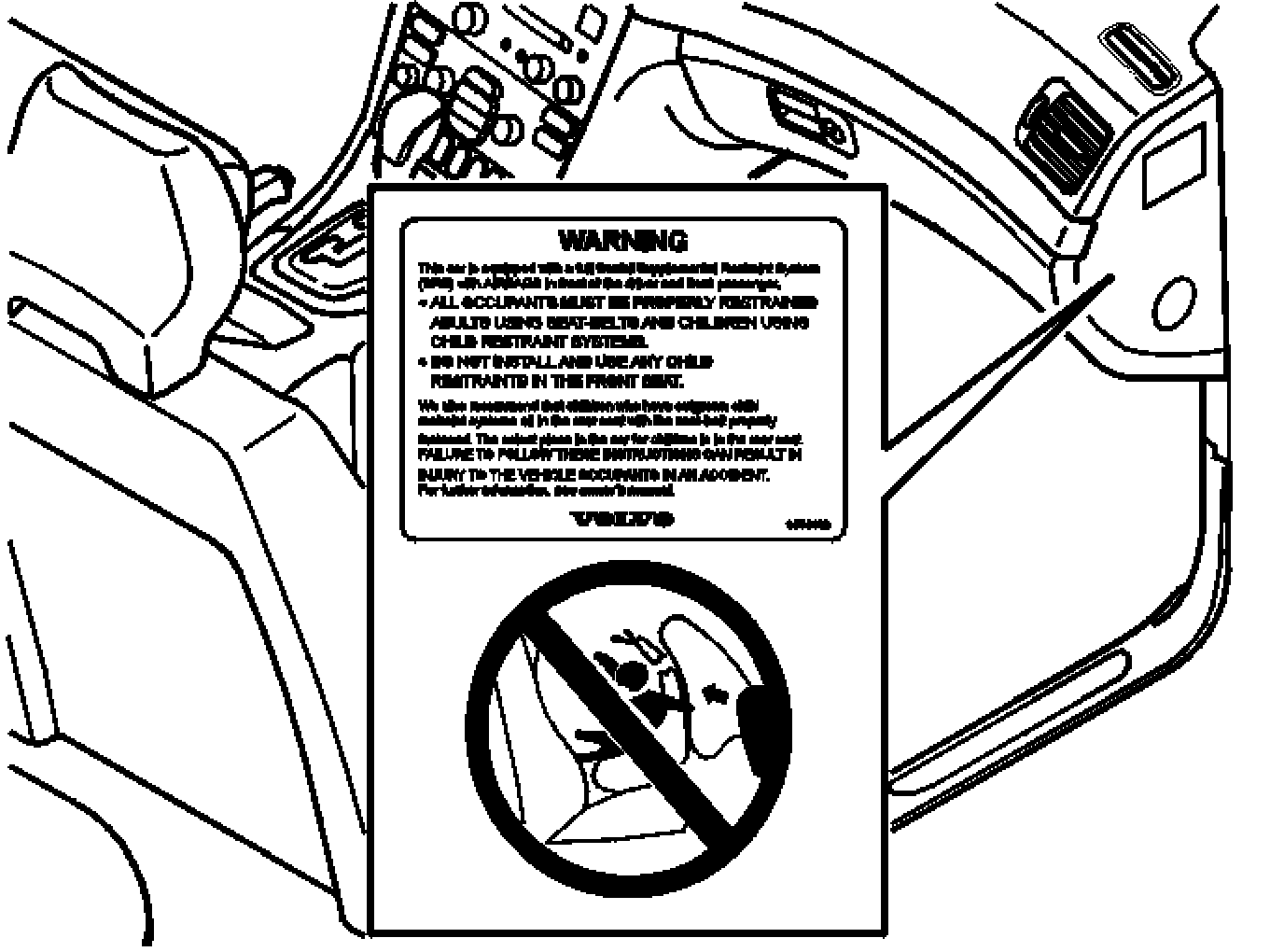This decal warns against putting a child seat on the front passenger seat.