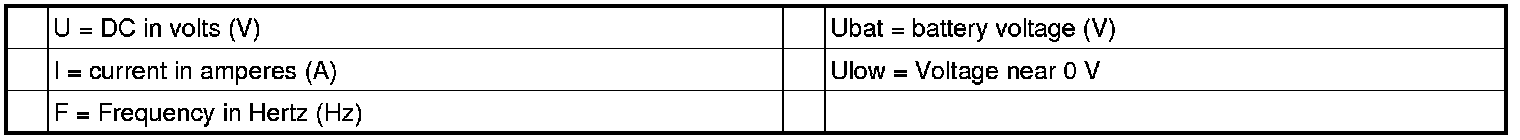 All the values indicated are taken between the terminal in column 1 and terminal #2 (ground).