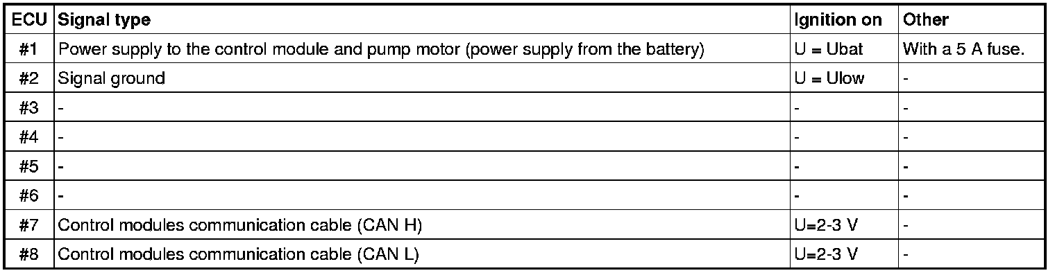 Signal Specification, Control Module