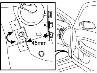 - Turn the bracket to maintain a distance of 45 mm between one corner of the bracket and the centre of the hole for the lower ground screw. See the illustration.