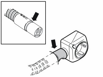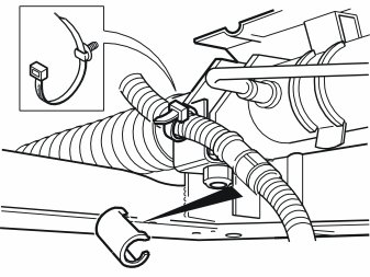 - Take the heat deflector hose and two tie straps from the kit and thread it onto the cable for the passenger compartment connector socket. Pull the heat deflector hose right up to the rubber grommet. Secure the heat deflector hose with both tie straps. If the heat deflector hose is too long, cut it down to a suitable length.