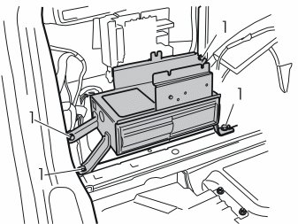 - Install the bracket with the CD changer / DVD reader behind the wheel arch. Use the four screws (1) from the kit. See the illustration. Tighten the screws. Tighten to 10 Nm (7 lbf ft).
