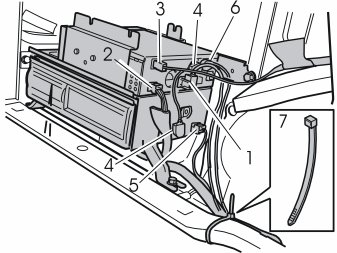 - Secure the cable harness at the cable duct. Use a tie strap (5) as illustrated.