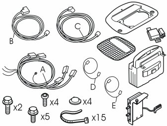 - the DIN cable to the radio (C in the kit illustration).