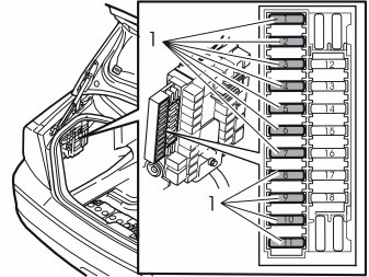 - Remove all the fuses (1) from the outside of the fuse holder.