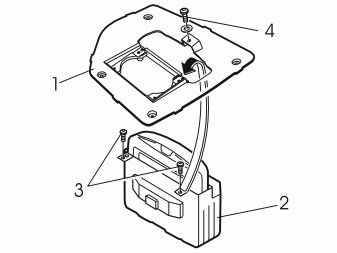 - Install the bracket (1) on the display (2). Only use screws at position (3) and screw and washer at position (4). Screws and washer can be found in the kit.