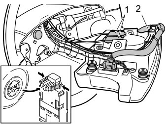 - Carefully reinstall the connectors for the SRS (supplemental restraint system) (2) on the steering wheel module. See illustration 43