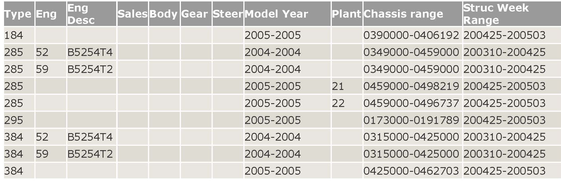 All turbo engines (M/Y 2005), P/N 30739380.