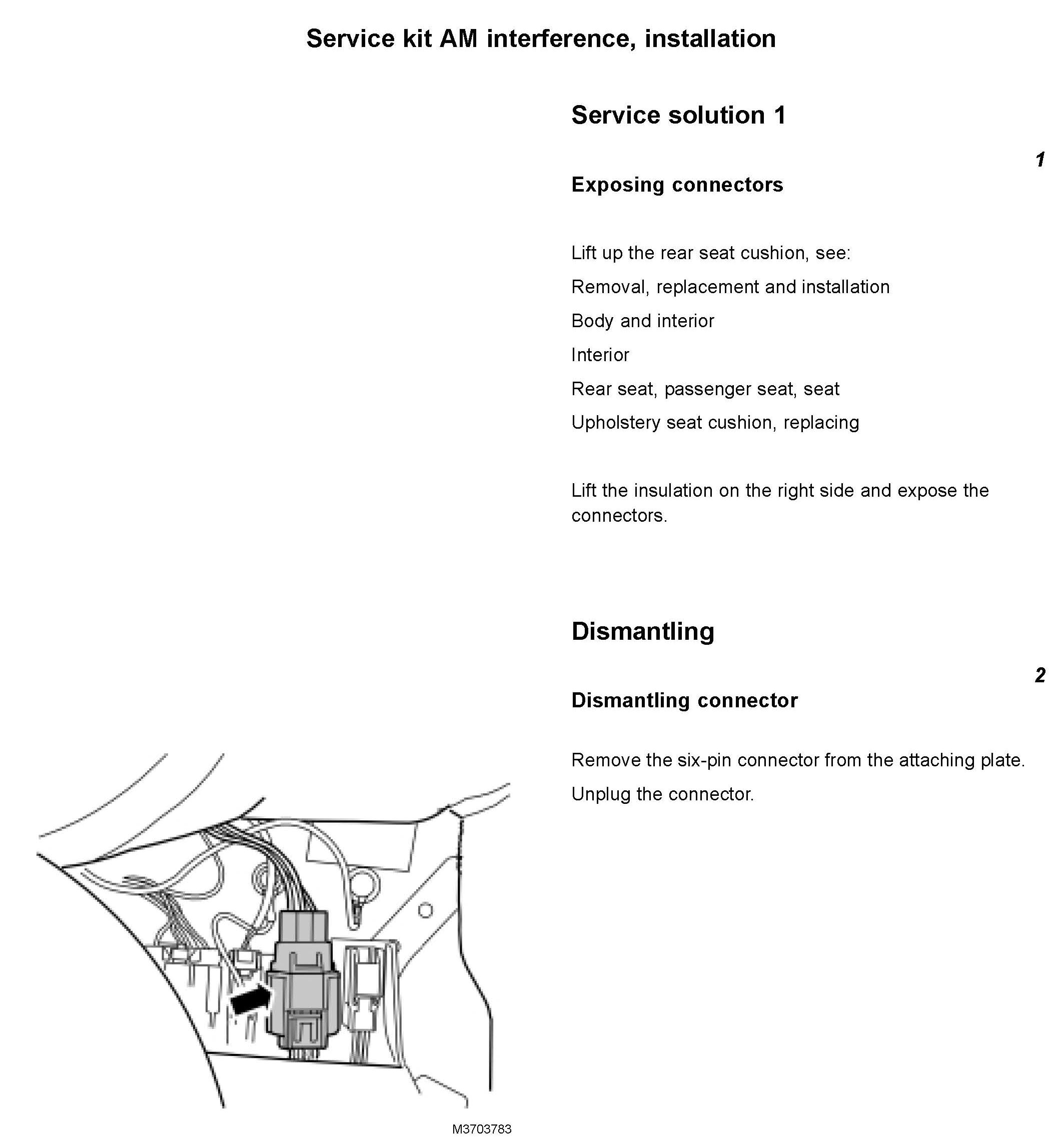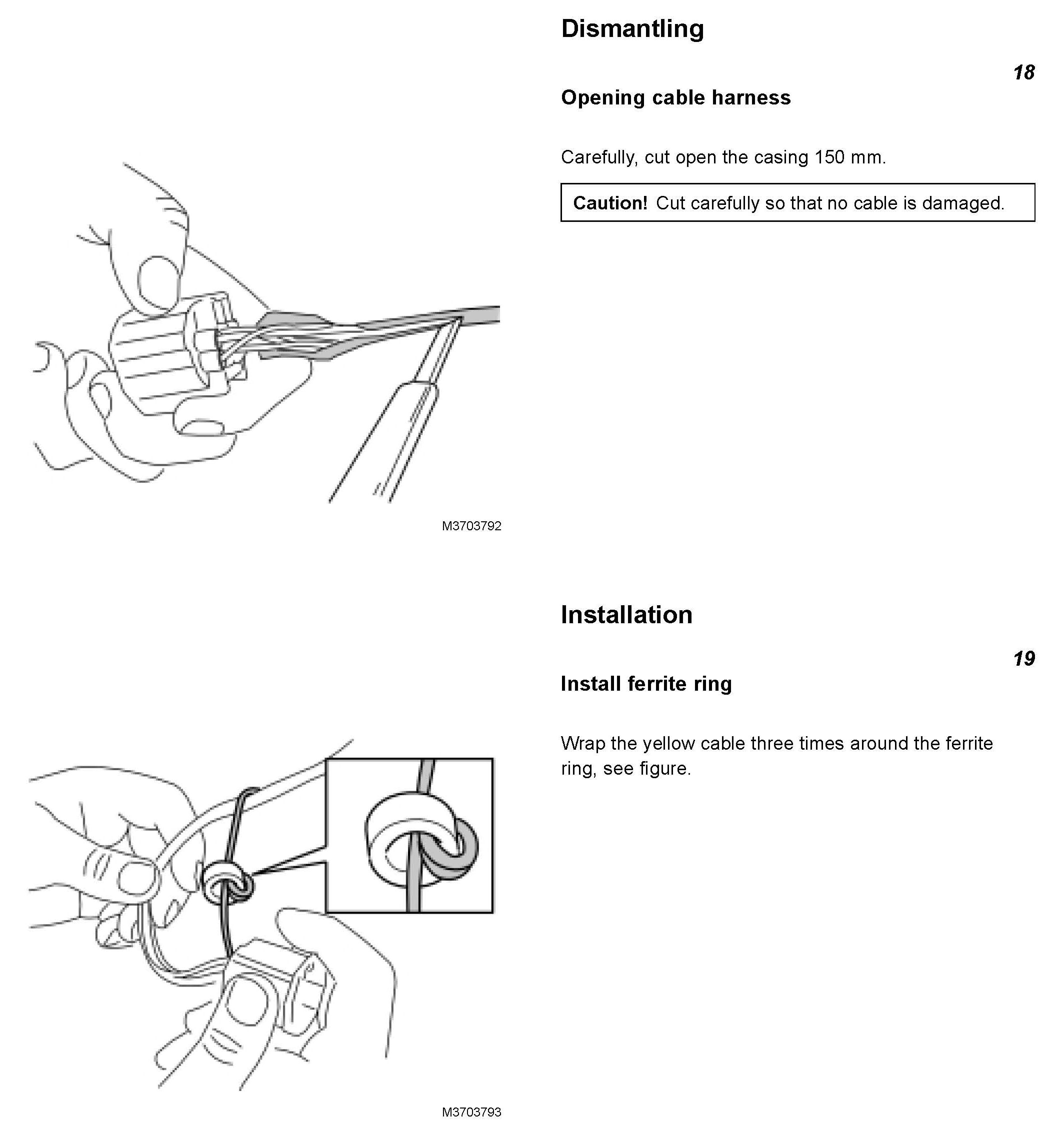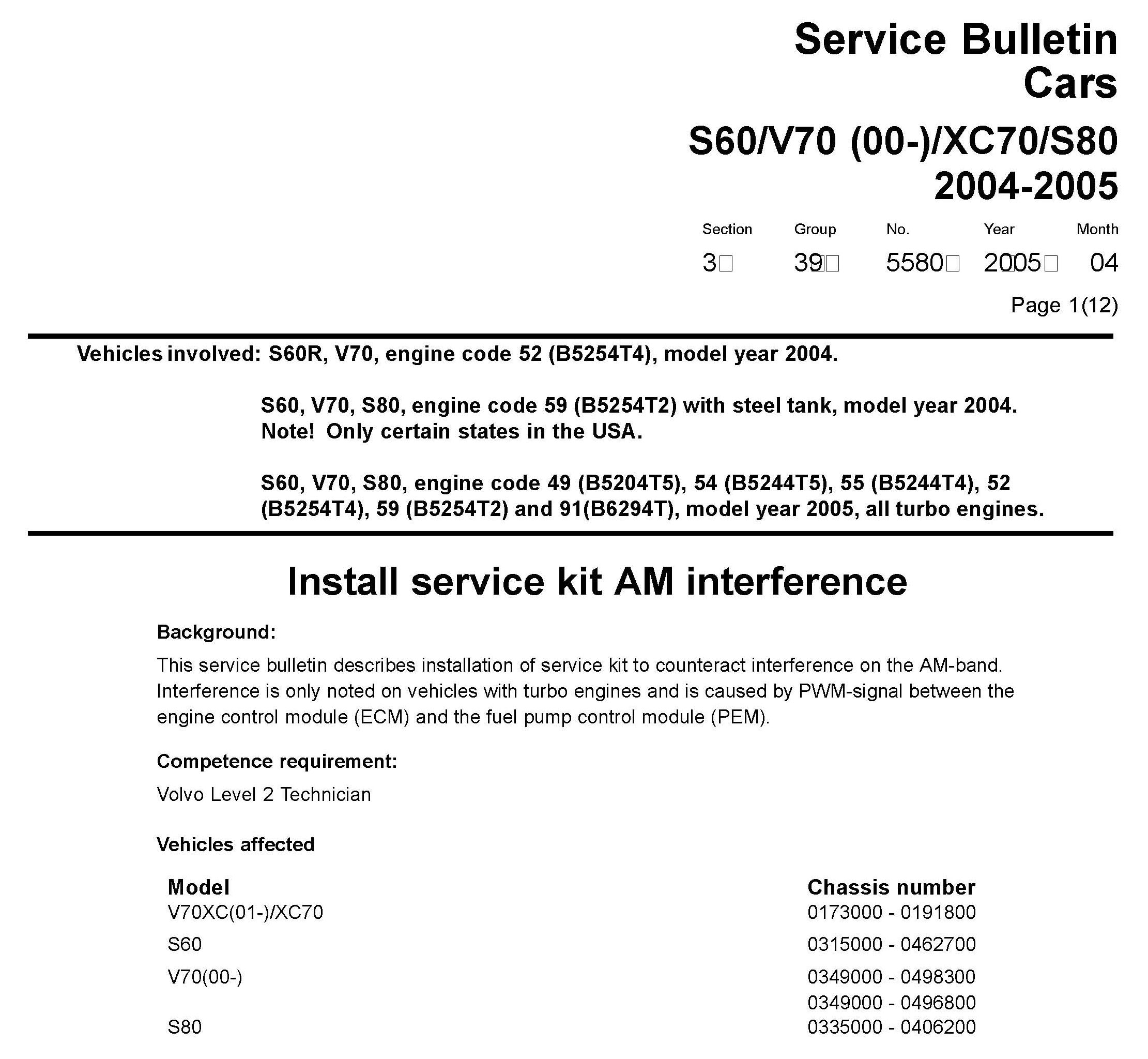 From 2005 week 4 a ferrite has been added in the cable harness to PEM, this will minimize the noise on AM band.