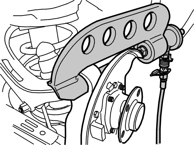 - the ABS line on the holder on the wheel spindle.