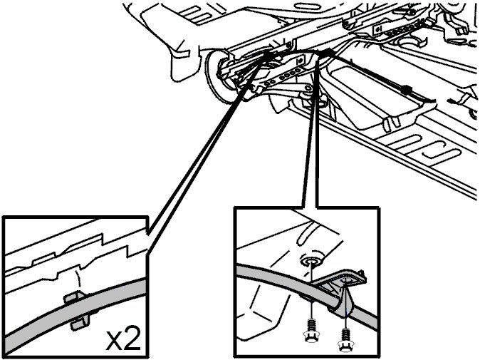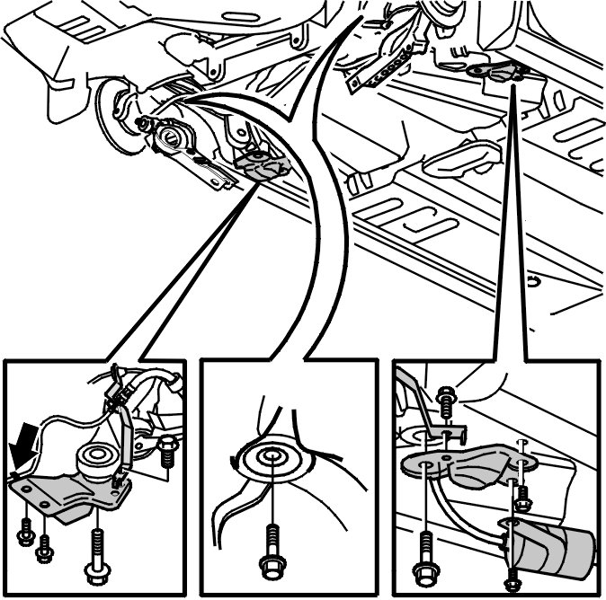 - the bracket for the parking brake cable in the sub-frame. Use screws. See Tightening torque Tightening Torque