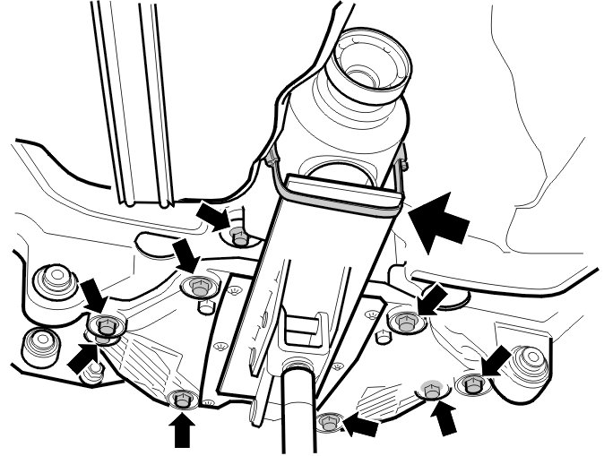 - the 8 screws in the sub-frame cover. Tighten the screws alternately. See Tightening torque Tightening Torque